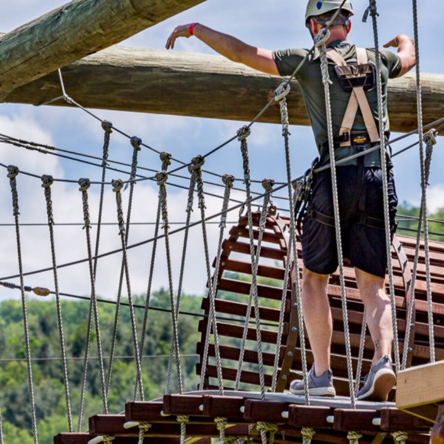 A ropes course is the modern-day twist on the traditional obstacle course. Constructed of wood, cables, and ropes strung between trees or poles, ropes courses provide people of all ages the opportunity to learn about challenges, risks, and rewards in a safe, exciting, and stimulating environment.